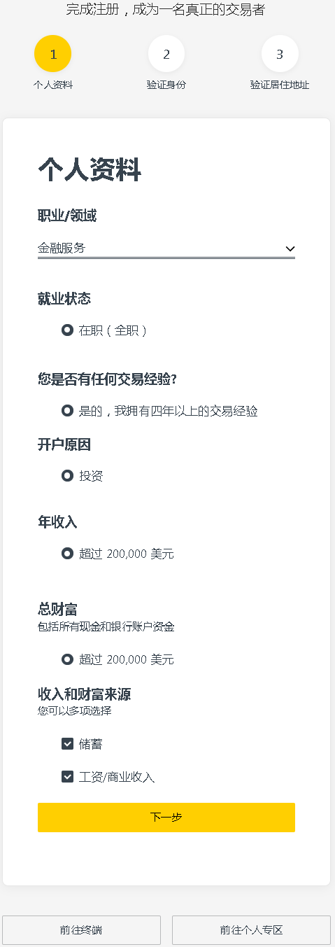 2、注册成功,点击成为一名真正的交易者,去完善资料。